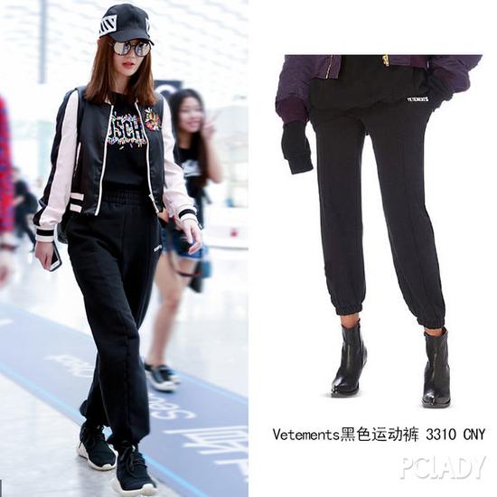 蔡卓妍all black的搭配酷感十足,Maje棒球夹克内搭Moschino黑色药丸T恤,Vetements长裤和Off-White棒球帽,轻松休闲的搭配时尚感丝毫不少。说好的moschino药丸系列要下架不是么?原来时装精们早就收了。