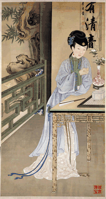 * R* J" B, ^9 }" v# y仕女临窗而坐,