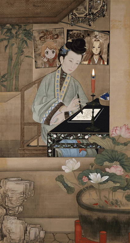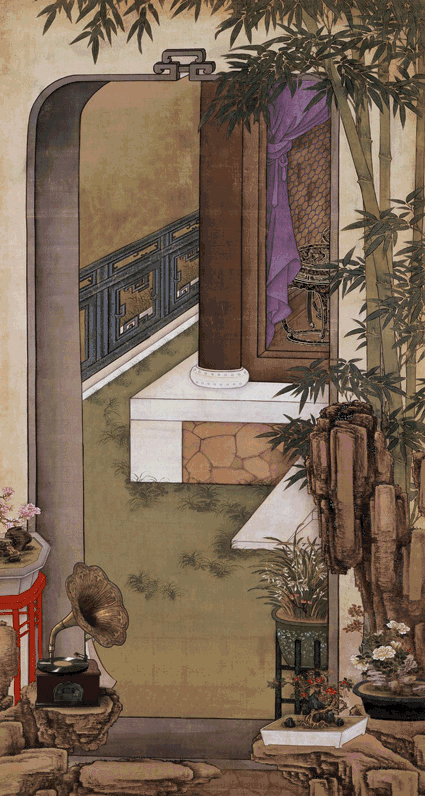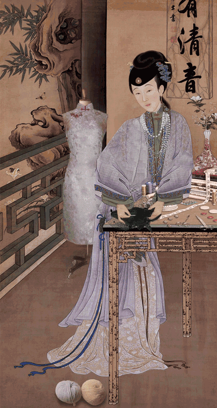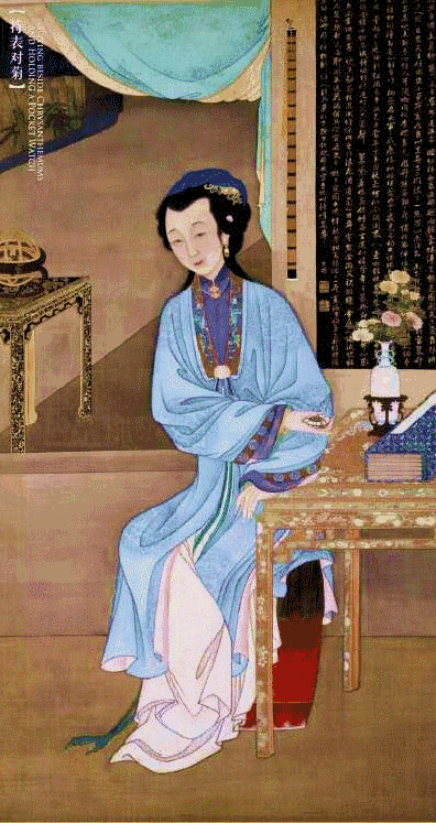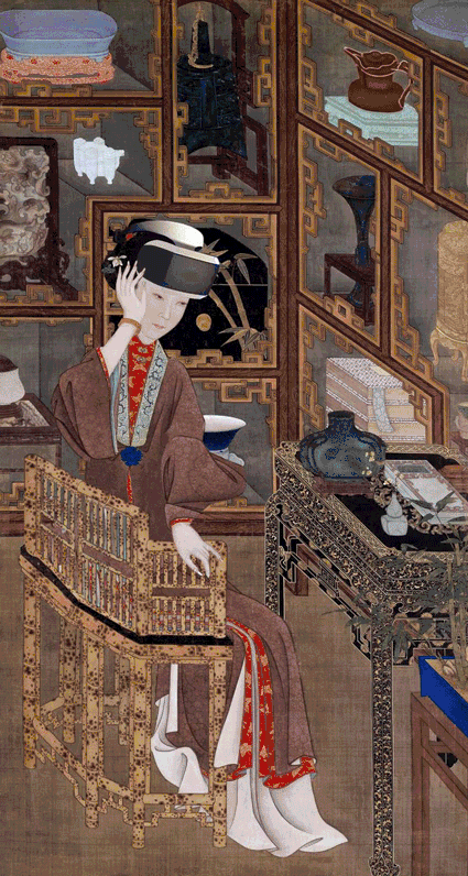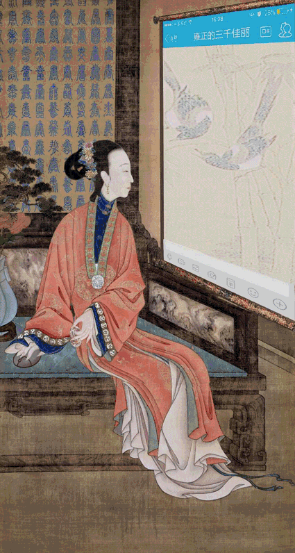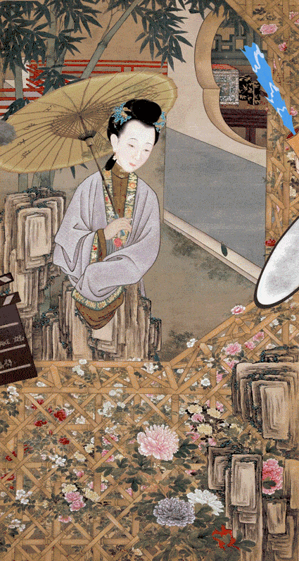 . k! l: @7 }2 S; t/ x) [清宫旧藏有一套《十二美人图》,画法精细严谨,美人均着汉装,姿态端庄,面容娟秀,背景陈设极尽奢华富丽。设计师挑选其中九张,予以小小设计,让美人“动”了起来。