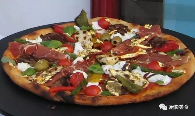 多米尼克-克罗拉是一位苏格兰大厨,喜欢用披萨来创造人物肖像。虽然詹姆士邦德(James Bond)007系列电影的制作方并没有委托他,他还是决定创造自己的007皇家披萨。这份披萨为12英寸,馅料包括用干邑浸泡过的龙虾、用香槟浸泡过的鱼子酱、番茄酱、苏格兰烟熏三文鱼、意大利熏火腿、鹿肉和年份香醋。最精彩的是,披萨上面装饰了24克拉的金片。这款披萨售价4200美元(约合RMB2.9万元)。