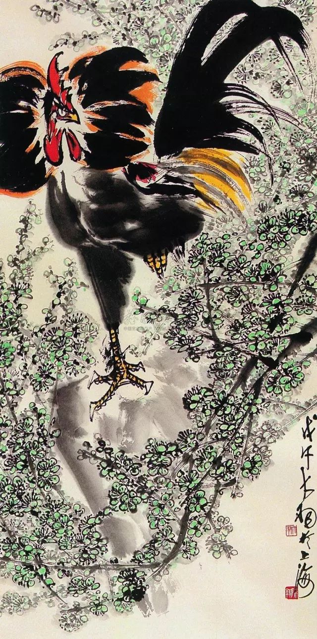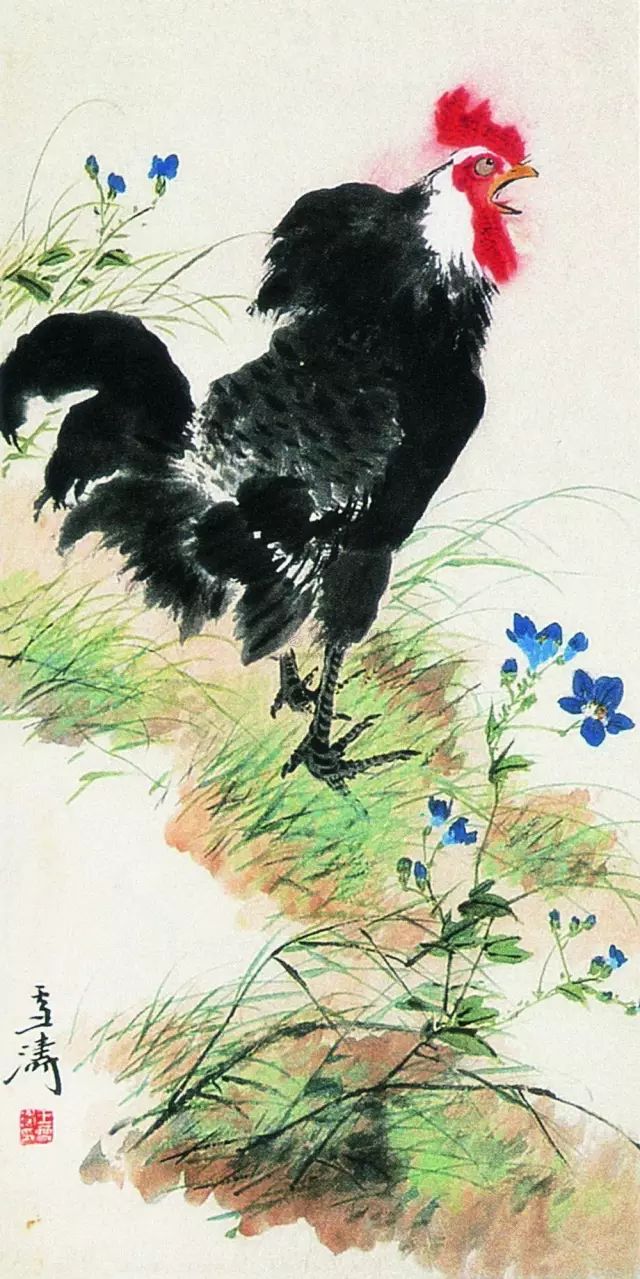 徐悲鸿的大写意雄鸡在风雨萧瑟中鸣唱,呼唤自由民主新世界;