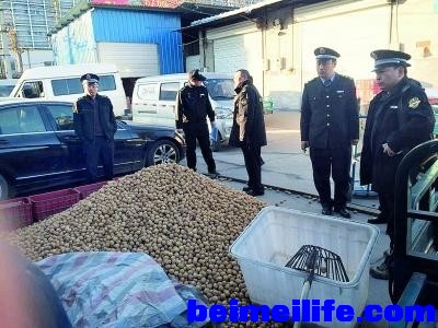 两商户将整袋(箱)包装核桃拆开,利用双氧水漂洗,属于二次加工。他们只有营业执照,不可以加工,涉嫌非法加工,宣布查封现场,对两商户立案调查。