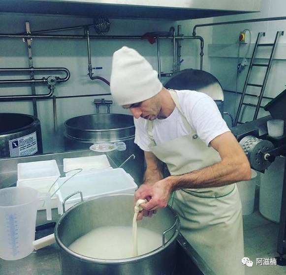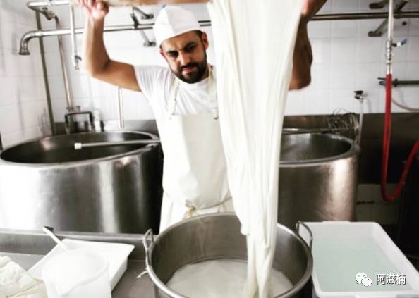 + Z) L% Q* R6 J- b# [帕尼亚地区的很多奶酪加工作坊都还在运作着,有幸去观看马苏里拉奶酪制作的全过程,并且现场也亲手尝试了一下,着实不易。要在热锅里不停的搅拌,甚至要把手伸进去,所以你得学会忍受80度的高温,不怕烫!
