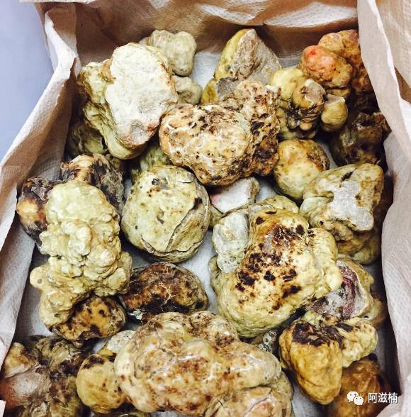 % i% _: m& \1 _( J9 E) T, h; b( q2 [白松露的香味独特微妙,难以用形容词去描述它,但是只要尝过一次,就难以忘怀。闻起来有点像泥土、雨水、树根和陈芝士,我们采集到的这一兜松露,它的价值可是不菲。; i& e. z' z7 w' @; A