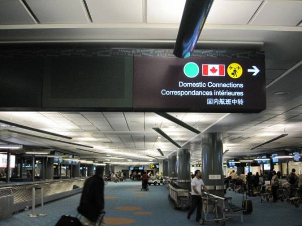 如果转机就前往另外一条转机通道,过程与上述类似,并把表格交给海关人员,没抽到你检查可以推着行李走了,顺着”connection”的标志,然后到”中转登记柜台”办理行李再次托运。需要注意的是,在取行李时,请勿拆掉行李条,否则在航班托运时会产生问题。另外,护照和加拿大境内段登机牌千万别托运了,一定要随身携带。
