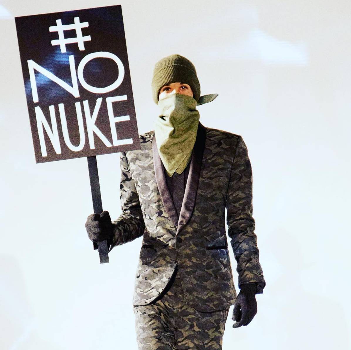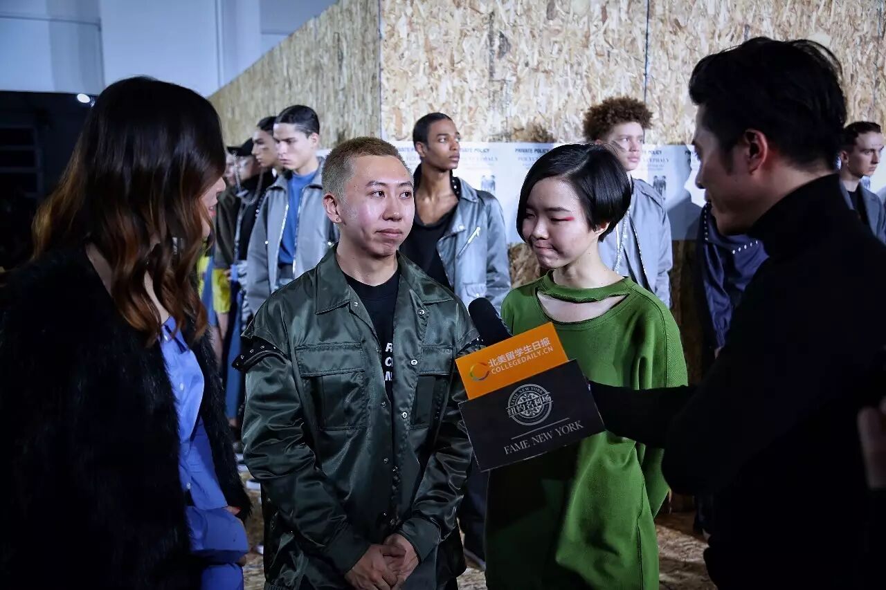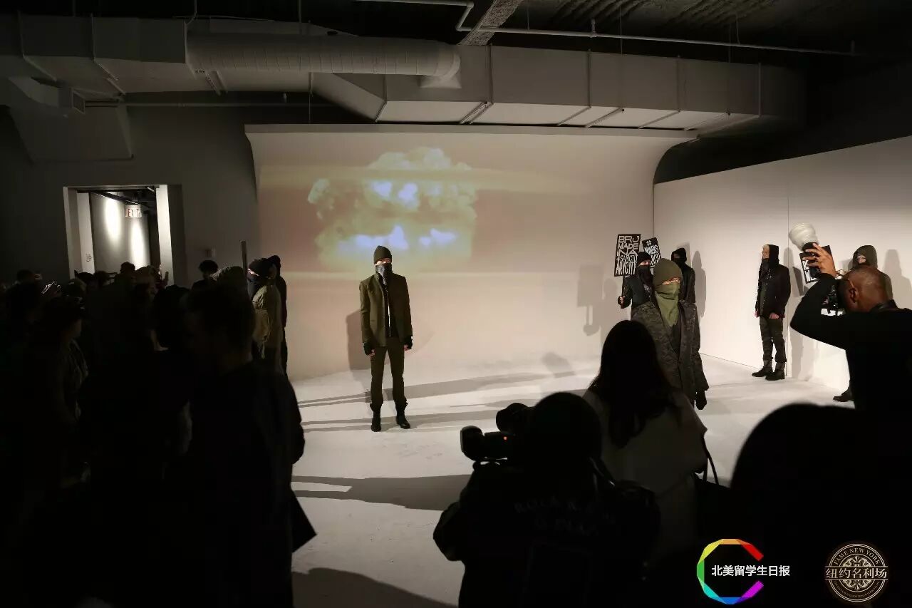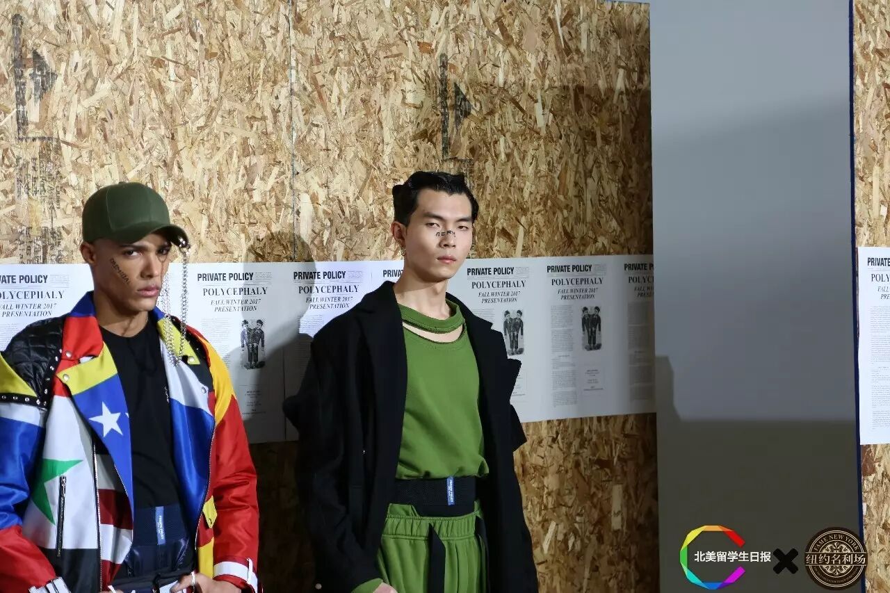 ! a$ {8 H6 u. g+ @3 y; s纽约男装周的这场presentation的确也了我们不少惊喜,除了有不少亚洲男模,还有两位纽约最顶尖的设计学院Parsons毕业的华裔设计师李浩冉和瞿思颖所设计的品牌Private Policy,这一季就很应景地结合了当前国际政治形势。