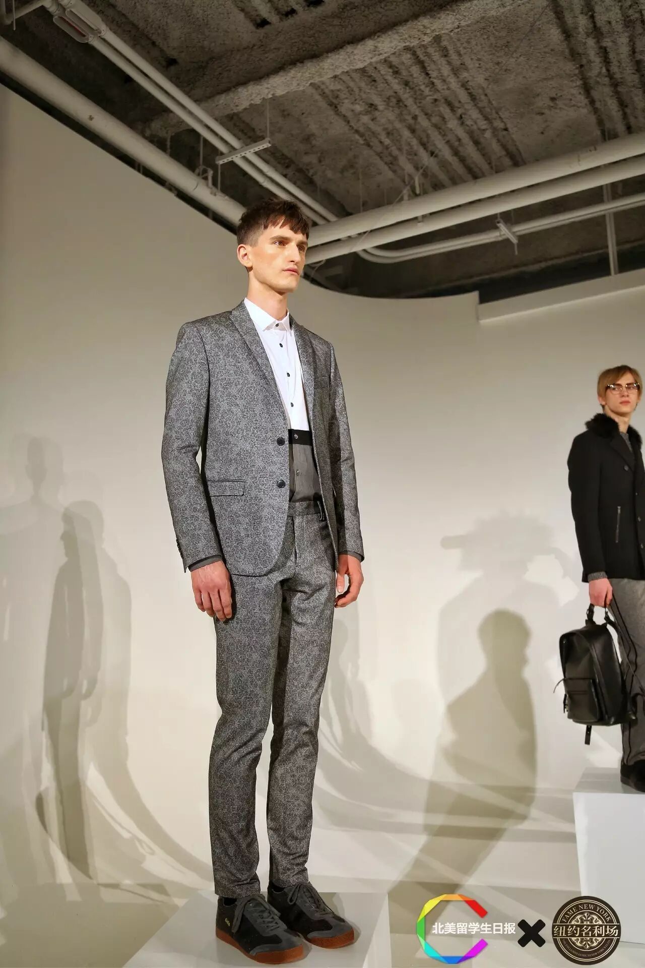 这次纽约男装周还有一位设计师——Julian Woodhouse,他的设计鲜明地体现出他的个人色彩。从他的品牌WOOD HOUSE的设计中可以看出他多元化的背景,他是位时装设计师、模特、造型师、行为艺术家、银行业从业者还是一位军人。" |4 |; X* ]6 X5 P9 ~