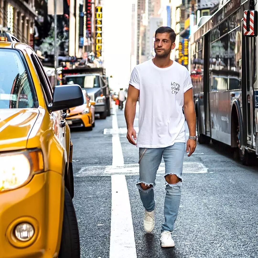 6 M l* z% A0 V# T3 g; m/ \$ K! Y+ U, i春天温度渐暖,在脱掉秋裤之后,不如来条破洞牛仔裤。