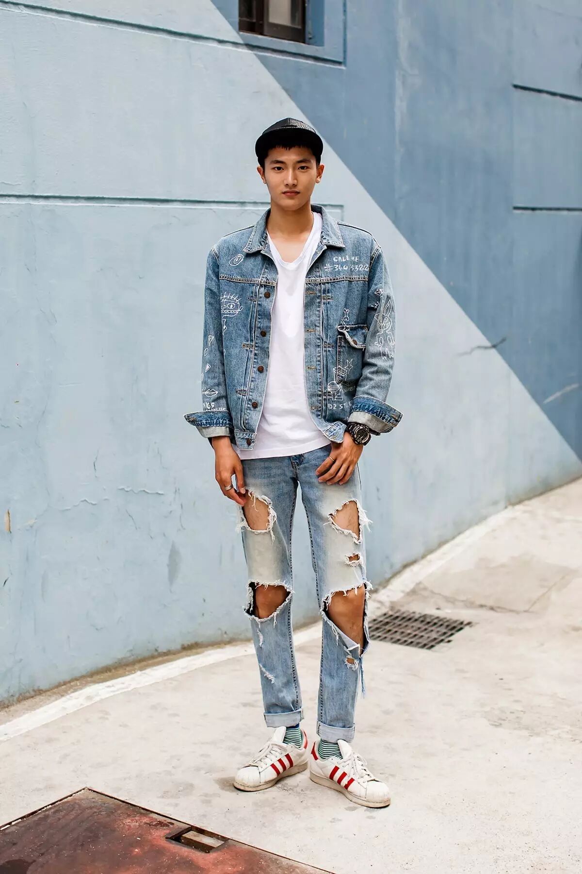 1 k+ I, M5 _% I* o9 H, z+ S% W当牛仔夹克碰上贴布元素,直男年轻俏皮的感觉瞬间爆棚。