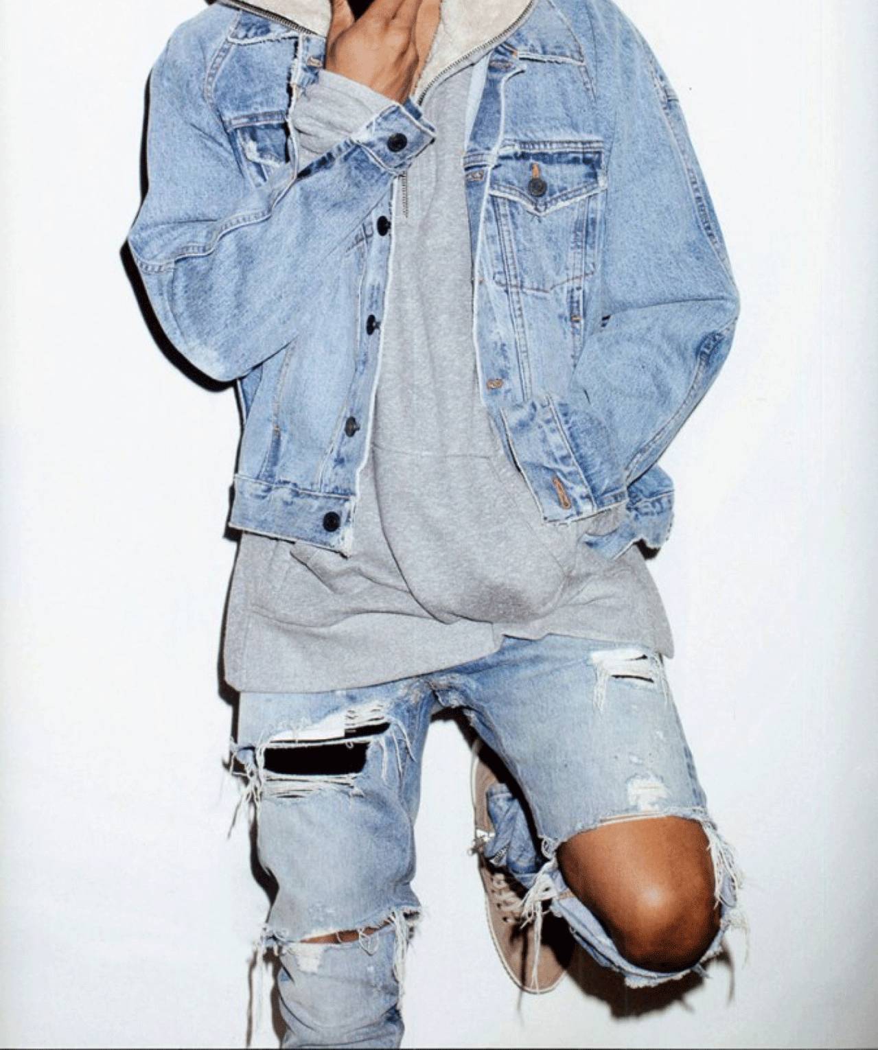 / {8 \! j) k% b4 R2 m至于下身,裤子尽量别和牛仔夹克的颜色一致,牛仔夹克颜色较深时,裤子颜色应选择较浅。同理,牛仔夹克颜色较浅时,裤子颜色应选择较深。