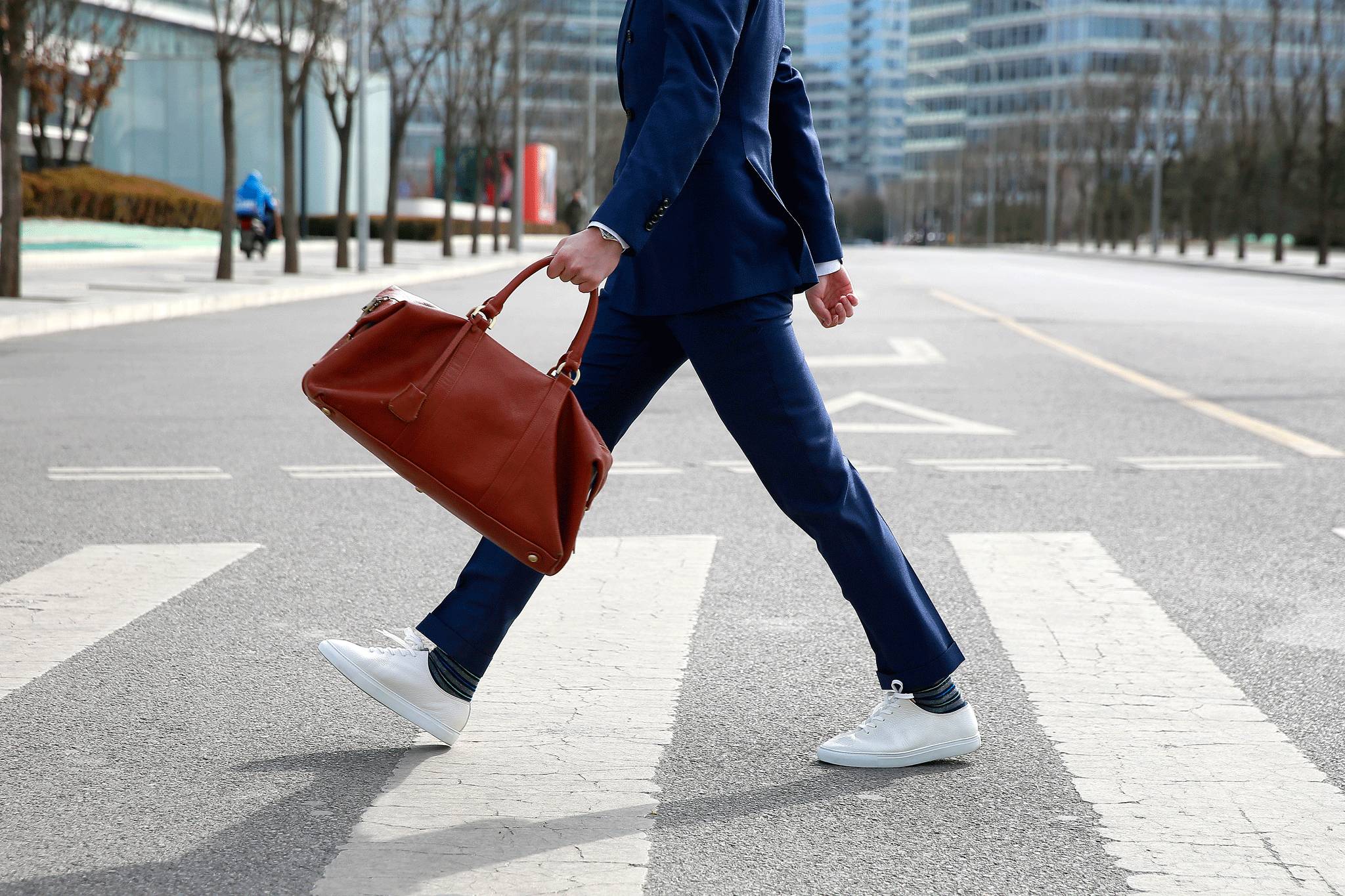 只要不是整套的白色正装,此类小白鞋可以任意搭配所有正装,完全不会出错。