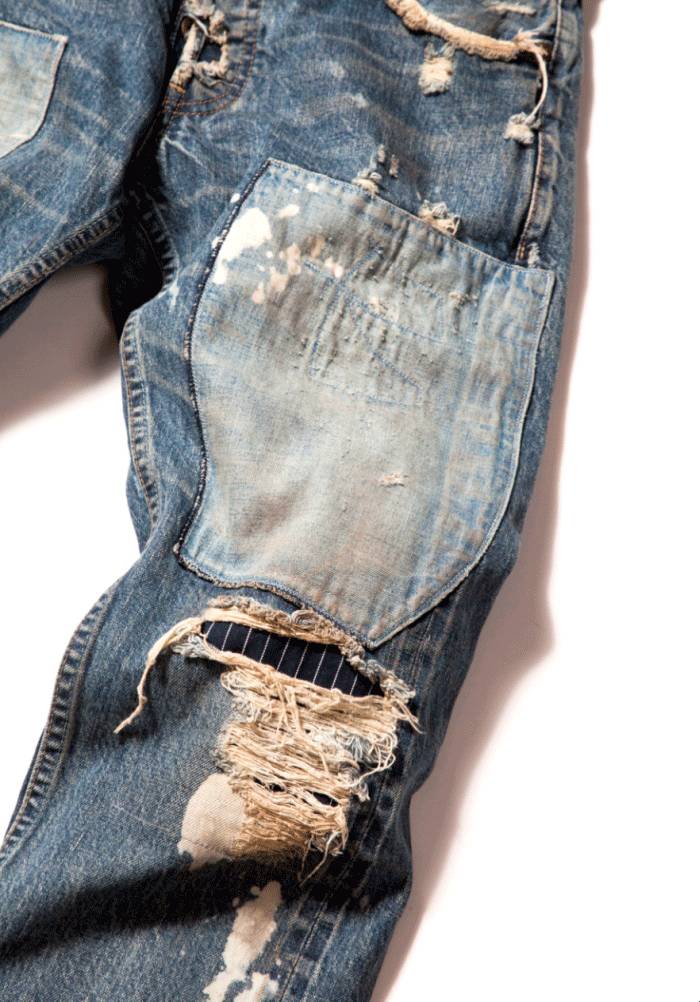 5 I5 t$ c& P9 s, O5 L3 B虽然它看起来稀巴烂,但制作工艺却比一般牛仔夹克复杂好几倍。