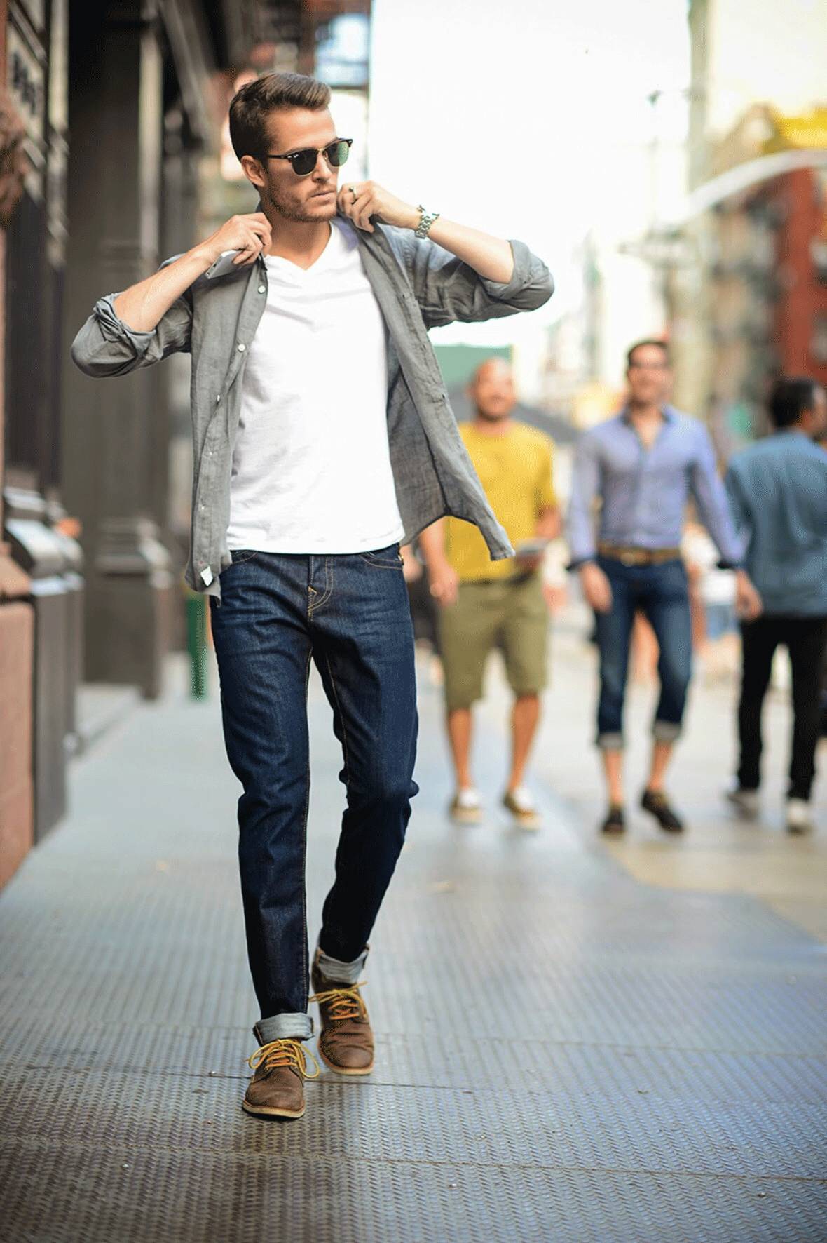 外搭棉质衬衫,一秒钟回归大学学长的模样: