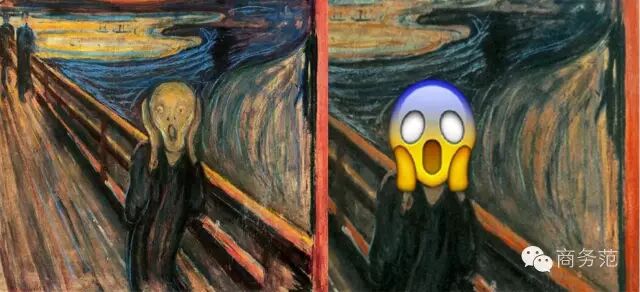 4 ?% R& ]5 U. ?+ pps:范主写过一篇《emoji新添了72个迷之表情,吃瓜群众前排围观!》,讲了72个emoji表情。在商务范公号的对话框里,回复“emoji”就可以查看啦。