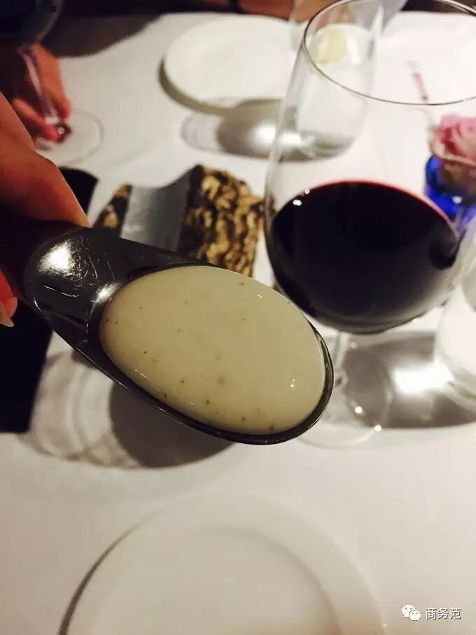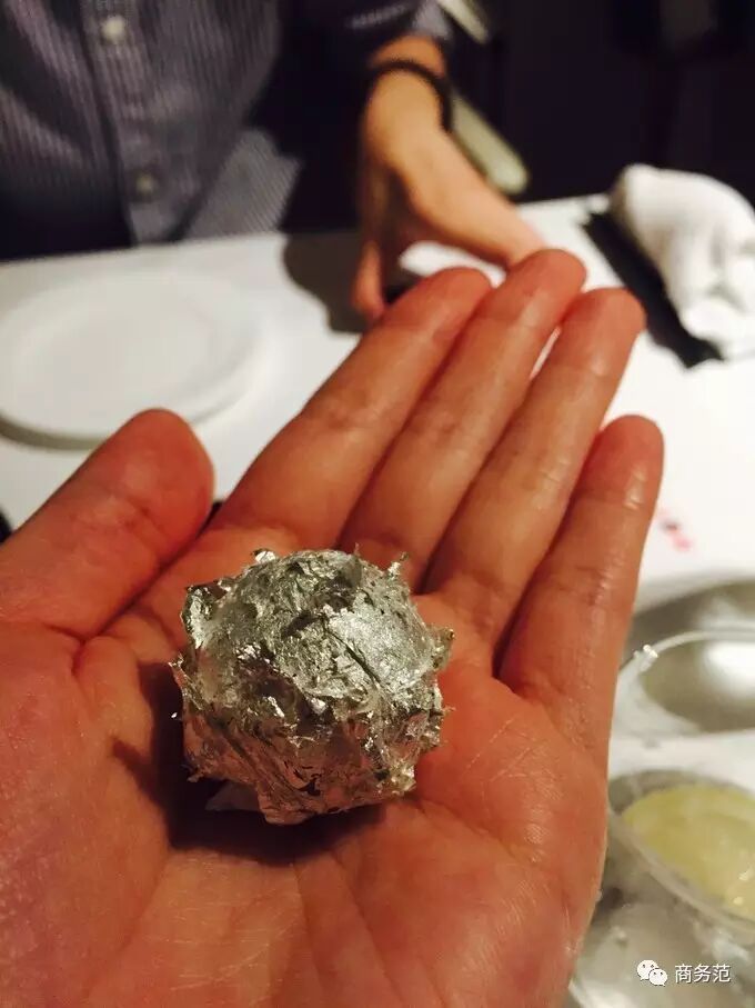 # f9 [9 ?$ U: E; x" S" o2 W3 r第五个表情是辣椒,结果它对应的菜品长这样,据说是白巧克力球包裹着辣椒水,真是一道hin有风格的菜…↓