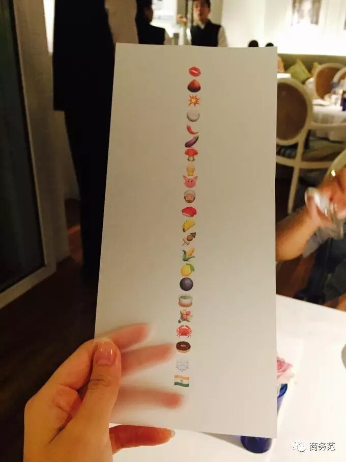 emoji已经代替很多我们生活里习以为常的东西了,比如Gaggan的菜单…吃的东西都能这么搞,以前看到菜单对想吃的菜一目了然,现在吃的是逼格是神秘感,对,就是酱紫…