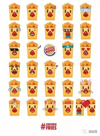 去年肯德基成功地推出了K-emoji,除了小鸡翅小鸡腿满天飞,还有标志logo老爷爷的表情。2 C' c, O5 H5 J, O- P3 y