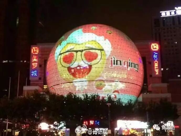 + Q2 S" i& C( m- B3 ]6 D为了传递尽情自在的品牌定位,可是花了大价钱为这款表情做宣传呢~一抬头就看见大屏幕里的emoji表情在对你笑(嘿嘿嘿~)