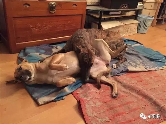 8 O; h/ \6 p7 p. b8 E' ]7 u4 }; {这两只狗狗在一起生活特和谐,而且非常默契,俩都不爱回家,喜欢在外撒野,跑累了就回家喝水,一起睡觉一起吃饭,各吃各的互不争抢!