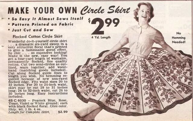 总的来说,50年代欧美女性在潮流的引导下,开始有意识地利用裙装把自己打扮得「优雅而富于女性气质」。裙子不仅不能太短,而且裙摆面积要大,坐在地上甚至能形成一个圆形。 b. e# _1 E$ \