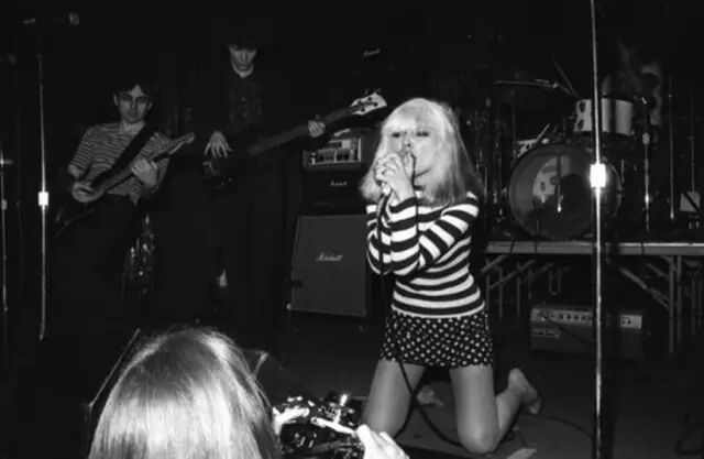& F5 V3 C1 v) n- P( E! V5 C! L$ y; [: D70年代,朋克(punk」移用了代表反叛精神的超短裙符号。当时,60年代年轻人的疯狂已成过往,一些怀念60年代的音乐人开始通过朋克来表达自己的观点。最典型的是1974年发迹于纽约的金发女郎乐队「Blondie」,她们的主唱狄波拉·哈利「Debbie Harry」常穿着超短裙出现在舞台上,成为「70年代末纽约城最拉风的性感女人」。