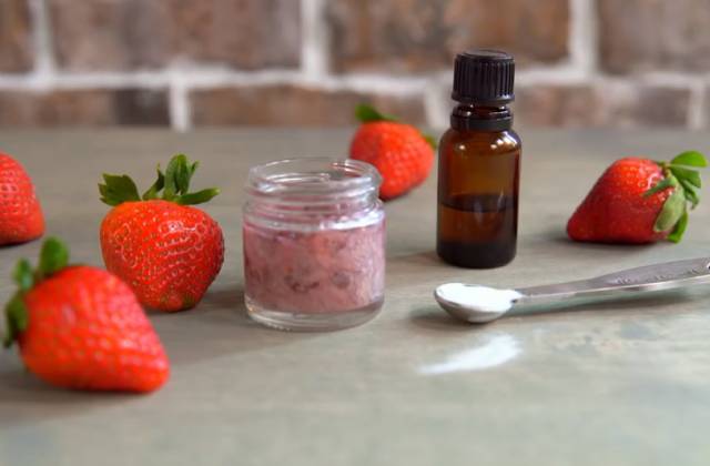 将草莓切碎,加入一勺小苏打,倒入三滴柠檬精油,充分搅拌混合即可。每天刷牙时,取少量和牙膏一起使用,只用一周就可以看到明显效果哦。