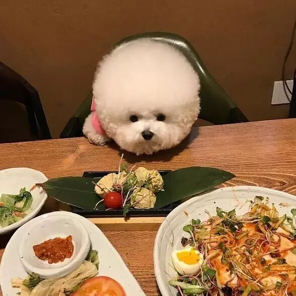 0 y; V( Q+ J9 N/ Q- |! ?* o有位网友家的小比熊只要看到主人吃东西,就急的不行,要起食物来绝不脚下留情,主人相当无奈。