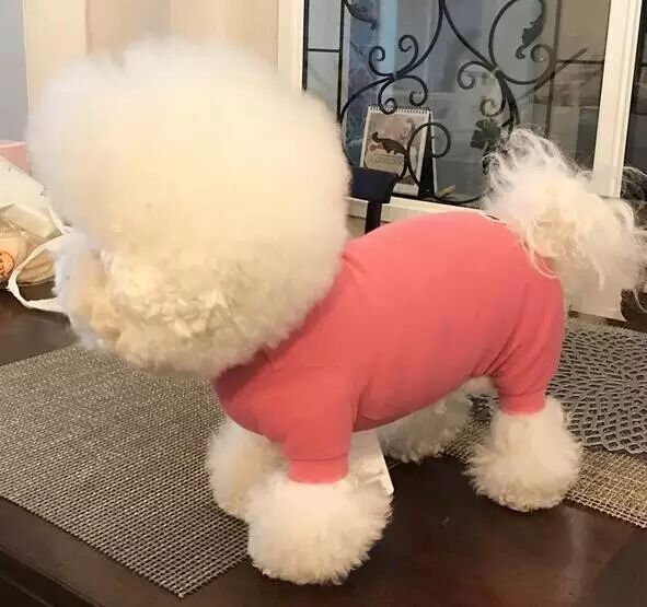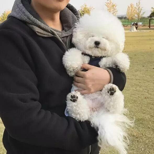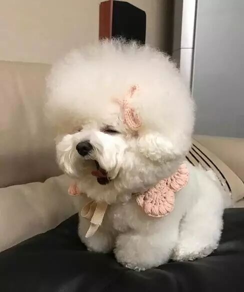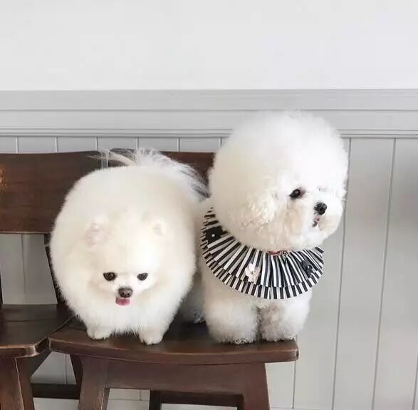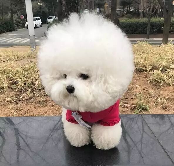 比熊和贵宾不同,最大的区别就是它们的腿更加短,而且头很大很圆,加上通体雪白的茸毛,保你看一眼就被萌化!