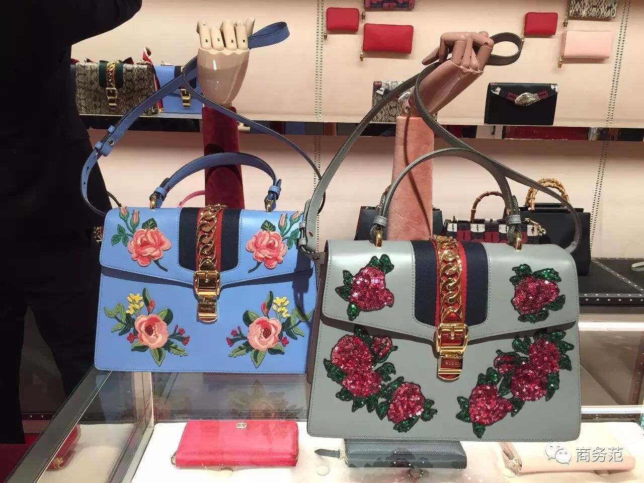 & Q6 j& \9 e: y/ E/ d; U2 c4 v另外店员小姐时候这两款今年新出的Sylvie刺绣款也卖得非常好。范主突然觉得美帝人民审美真是爱花俏,包要带花,手镯要钻。范主自己还是更喜欢基本款。哦对了,它们的价格是3500美元/只。
