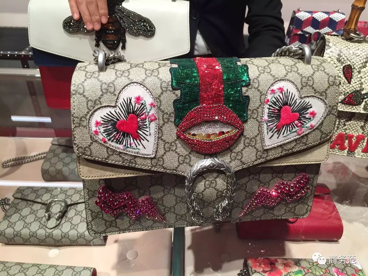 . t R5 K0 p' ^% d4 i, f$ u; _; y会说中文的店员小姐向范主大力推进了这只设计夸张的酒神包,因为它是纽约限量款,只有在这里才能买到。价格是3980美元(大约2万7千多人民币)。