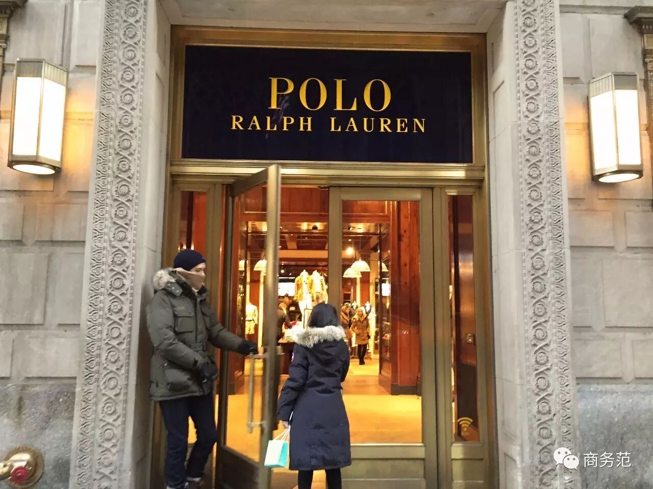 和Coach一样,Polo也是祖国人民喜闻乐见的美国品牌,男士服装尤为出名。而它位于第五大道上的旗舰店,也非常气派。范主左边那个Boy不是路人甲,而是专门负责为顾客开门的工作人员。范主再次被1米9几的大高个秒杀~~~~(>_<)~~~~* v6 F9 v: X n- ?