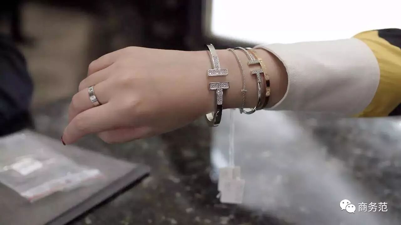 * A2 Z) s% {- {在美国买Tiffany还是很合适的,价格比国内便宜30~40%。举个栗子~国内标价50000元的经典款T手镯(粗的那只),美国的价格是5200美元(约合人民币35777元)。不过最后别忘了加上纽约8.75%左右的税。
