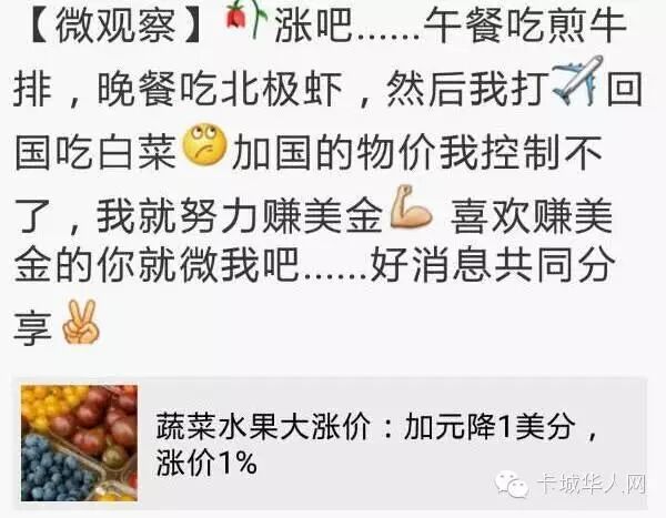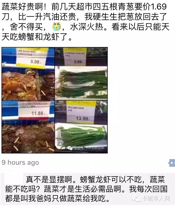 好吧,加拿大的华人们无法淡定了,不管是微信朋友圈还是各种微信教育群、股票群、代购群甚至是炒房群,眼下都好像只有一个话题——现在的菜价,涨疯了!