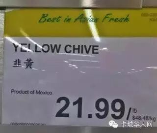 韭黄,21.99元一磅。你没看错,这就是加拿大华人超市里韭黄的价格。这还是昨天的哦,明天说不定就涨到25了。就算是加元跌成狗,这个价格也相当于100多元人民币一磅。