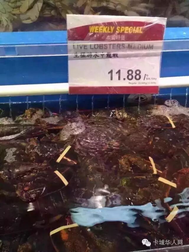 9 e* X) T8 Z, X) w 看看旁边的龙虾价格,一磅才11.88元啊,韭黄真成了韭皇帝了,这身价杠杠的。