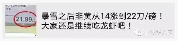 东部人民的呼声,暴雪之后韭黄从14涨到每磅22元,大家还是继续吃龙虾吧!