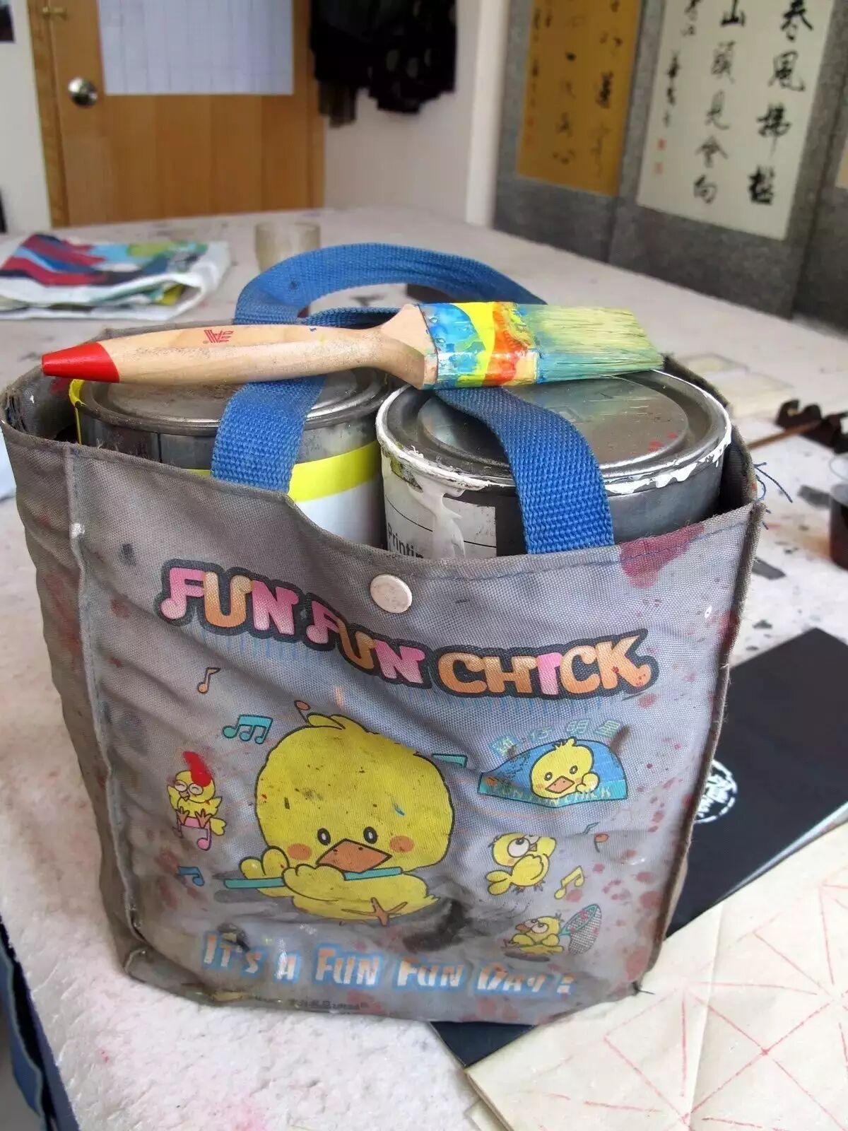再背着油漆上去。
