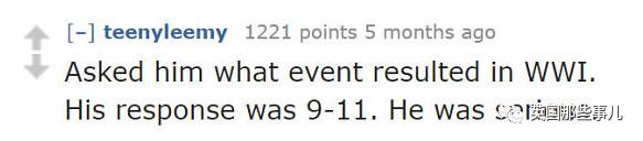 k& n- V! h2 u o( S问他是什么导致了第一次世界大战。。他告诉我是911事件