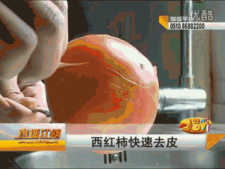 第二步:很快西红柿表皮便裂开了,轻轻一撕,便能去皮啦~
