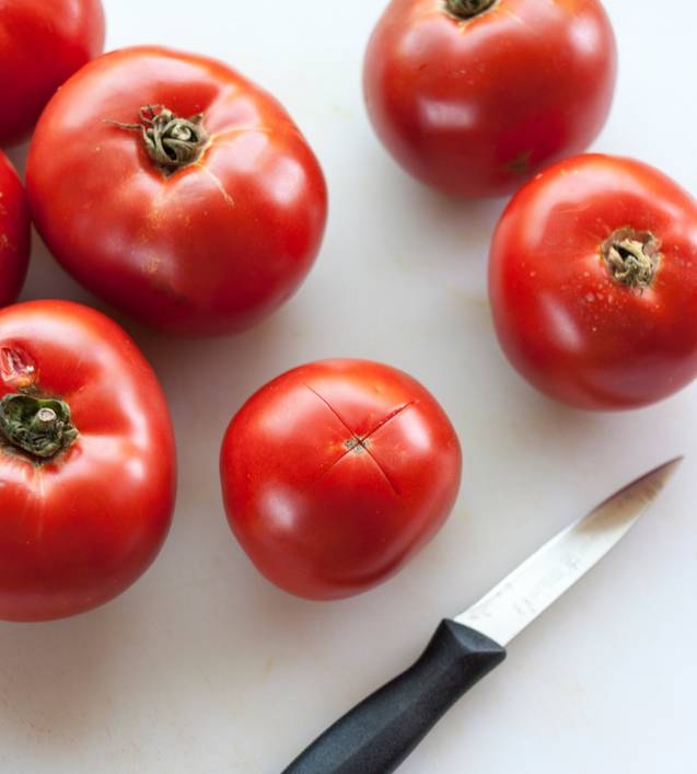 第二步:将划了口的西红柿放入锅中煮1~2分钟。
