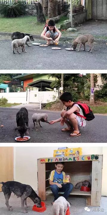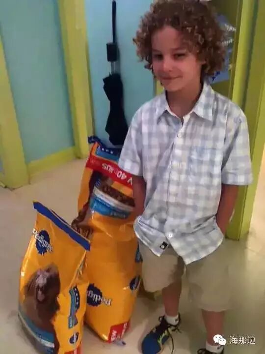 ▼小男孩用自己的零花钱买狗粮送给当地的动物庇护所。