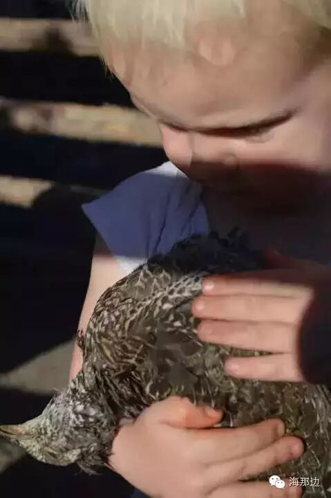 ▼我们的小儿子抱着一只死亡的松鸡,并且试图给它喂水。