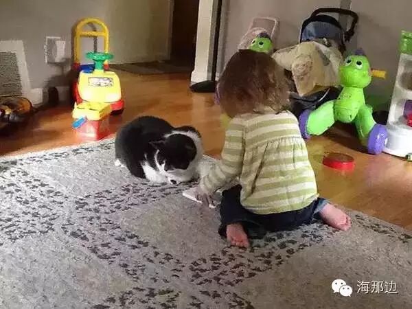 " T8 w6 ~+ o- _▼我老婆跟女儿说喵咪受伤了,所以跟它玩的时候要小心点。我女儿回答说:“好,那我念书给它听。”