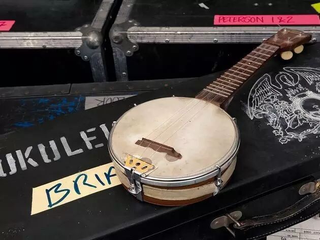 布莱恩一手玩儿吉他,