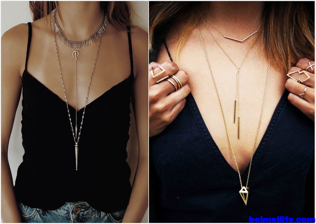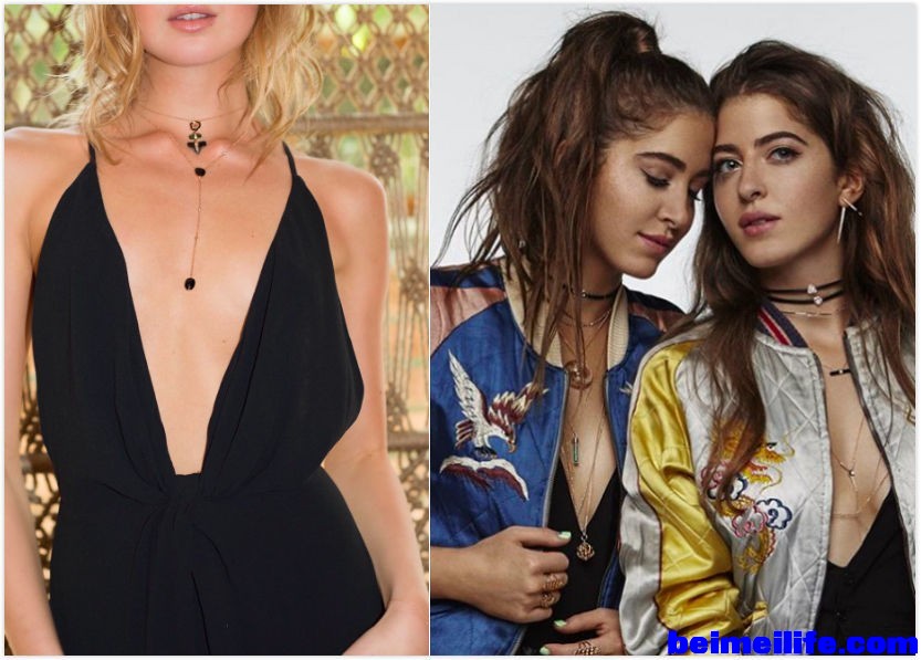 ( C3 i3 z, O$ t" C 当然如果你不习惯穿着太暴露,也可以戴在衣服外面,这时候就很考验你的搭配能力了,一般黑色打底外面戴些极细的身体链并且且层层叠叠还不错,看下图右边的还是有点奇怪,当然这种搭配本来就透着种随意,也没什么不可以。