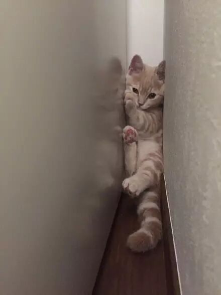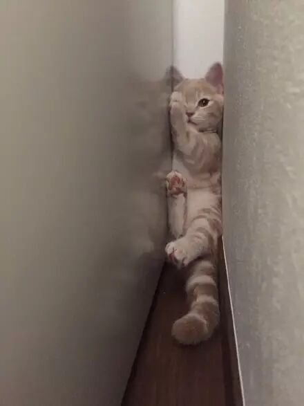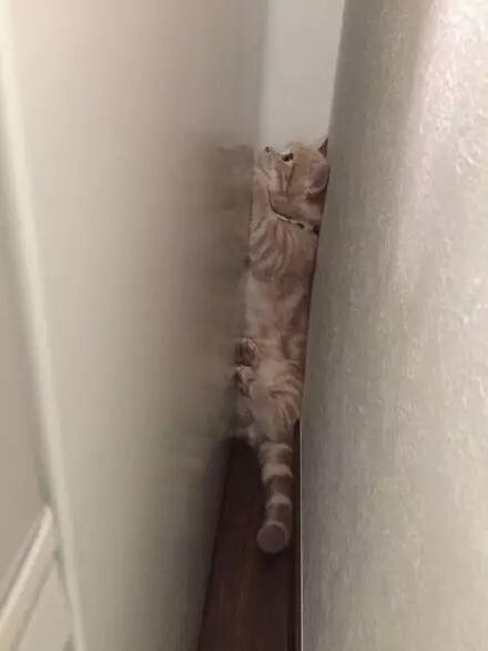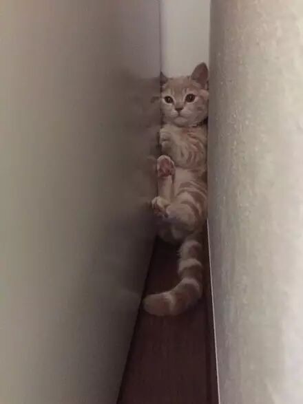 猫因被直升机声音吓到躲墙缝,这模样让人看一眼就失血过多了... ...