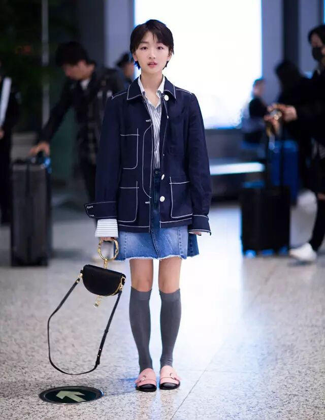 ▼周冬雨就用Red Valentino的牛仔扇形边半身裙演绎了少女甜美风。" f% n3 A. V; \4 l* d