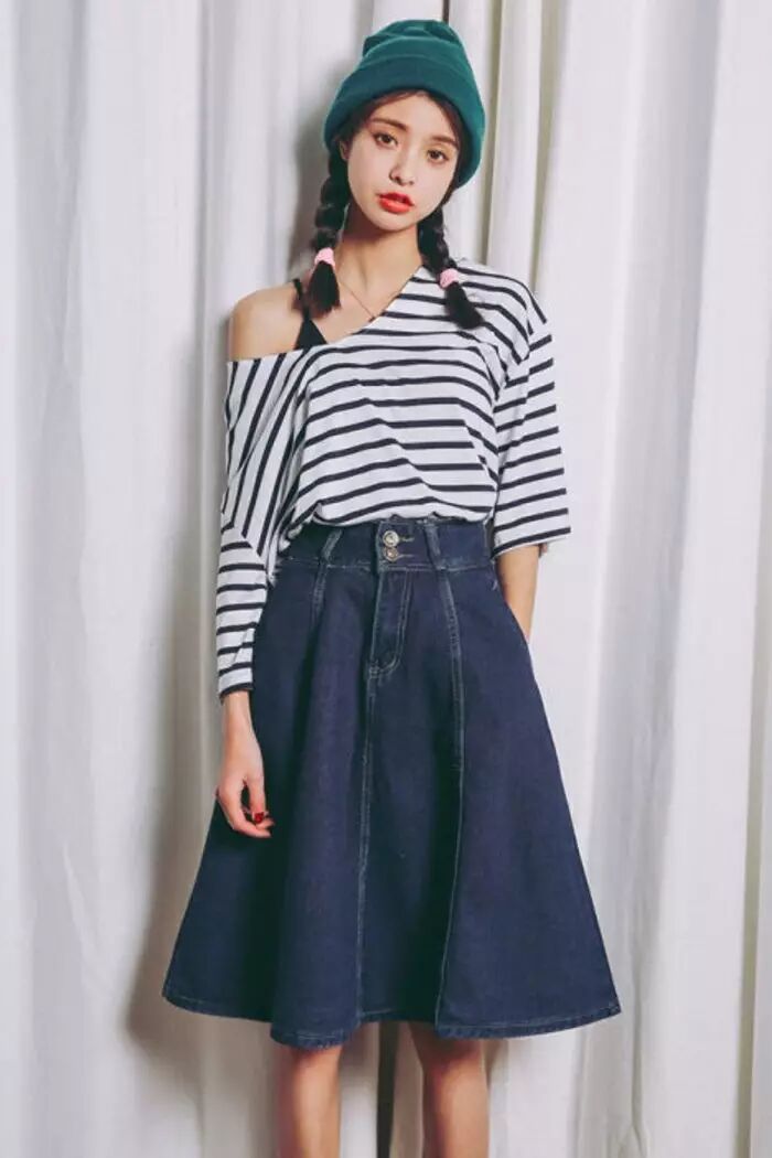 5 A" }) d$ C) Z2 ?▼时下最chic的粉色系搭配条纹牛仔半裙,也是充满了可爱的孩子气。