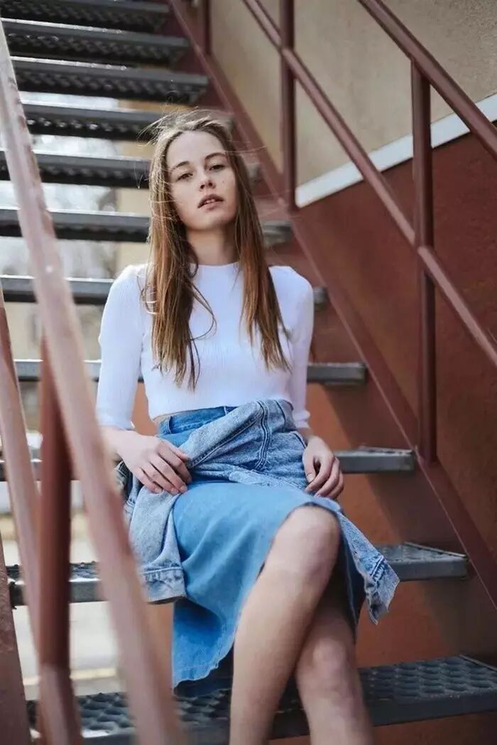 d( y. W x$ ^; l# c" `3 v▼艾尔莎-霍斯克这身白色衬衫与牛仔裙的搭配,斯文可爱与街头休闲的碰撞非常讨喜。