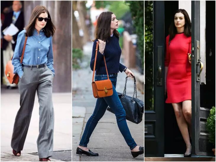 / H5 X$ c, E% Q+ x. F9 @' k5 e0 H另外一位就是电影中的人物,安妮·海瑟薇在《实习生》中的穿搭了。也是非常有代表性的一种类型—简单实用,虽然是几年前的电影但现在看这些穿搭还是觉得不过时。就是因为它足够简单所以没有什么会过气的单品。这也是办公室穿搭中你要注意的一点。